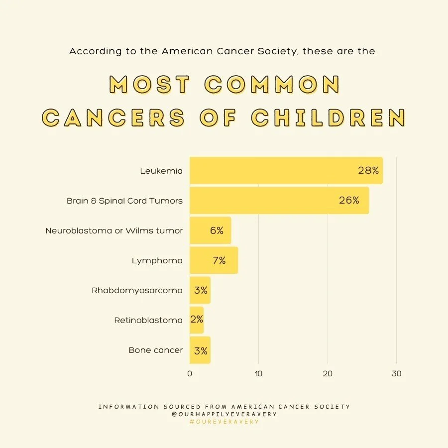 Leukemia, brain tumors, and bone cancers are among the most common childhood cancers. Osteosarcoma is the most frequent bone cancer, usually affecting teens during growth spurts. Ewing Sarcoma is rarer, occurring in both bone and soft tissue, mostly in teens and slightly more often in boys. It accounts for about 1% of childhood cancers, affecting roughly 200–250 children in the U.S. each year.